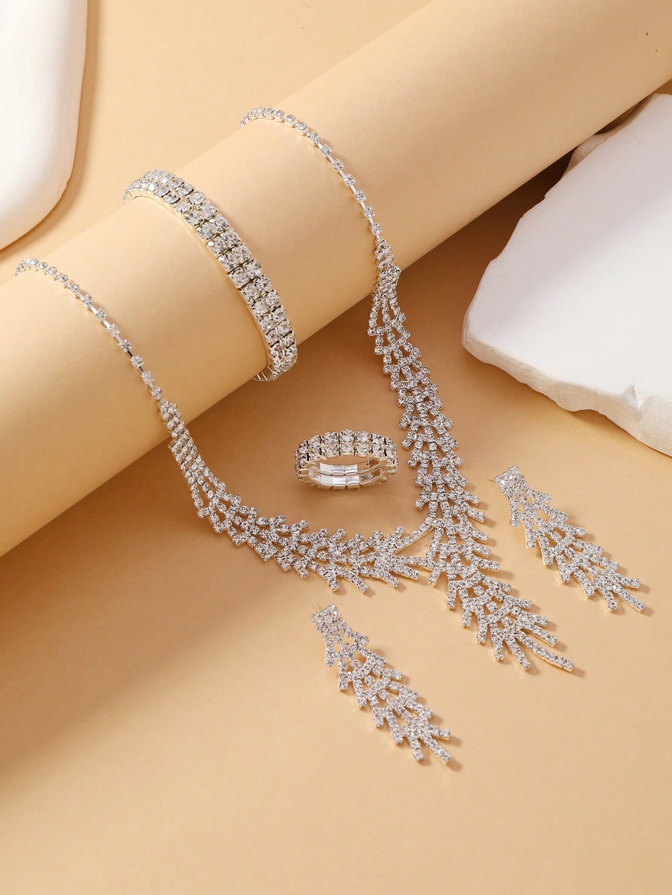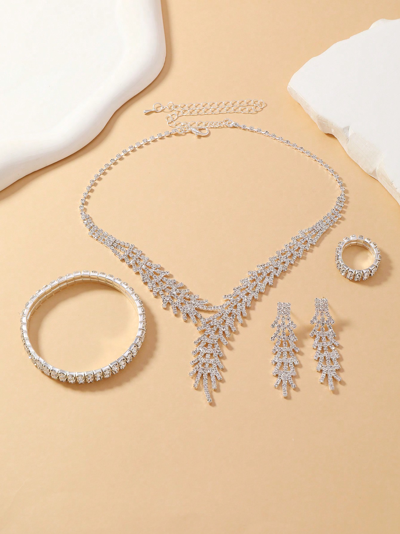كن أول من يقيم “طقم مكون من 4 قطع (قلادة، أقراط، خاتم، سوار) مرصع بالكريستال بتصميم التاج” إلغاء الرد