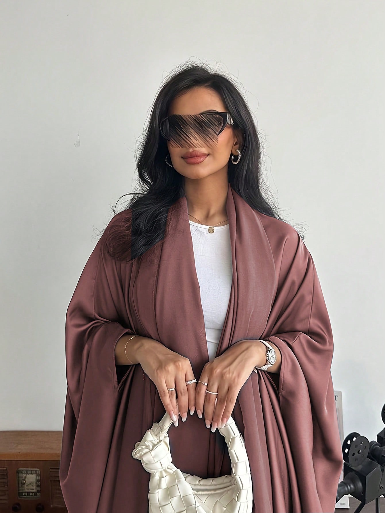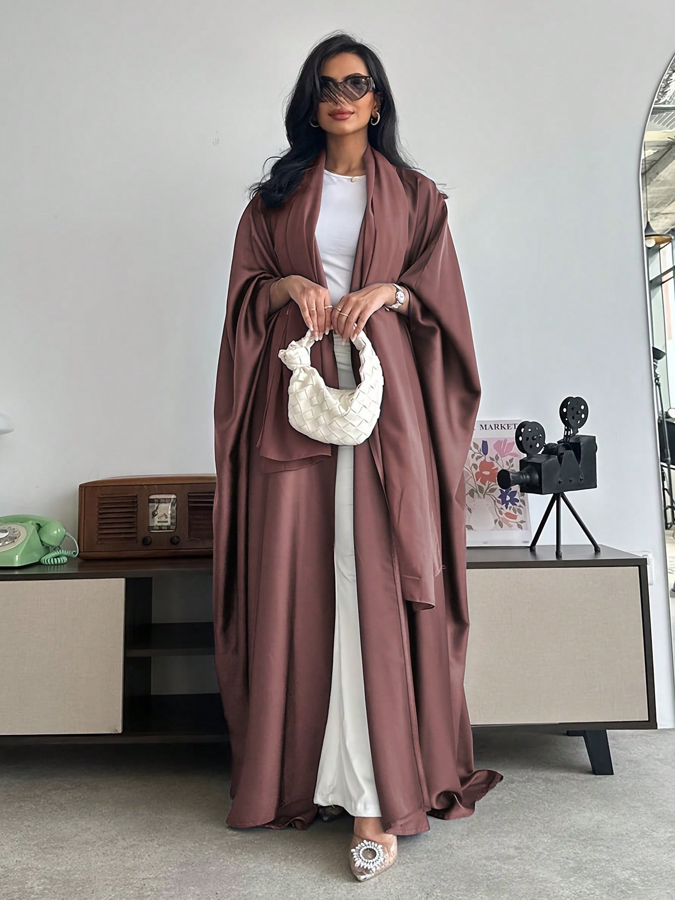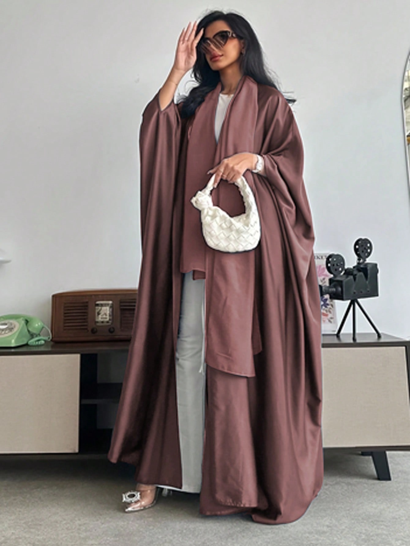 عباءة فضفاضة طويلة بأكمام على شكل خفاش ذات لون سادة بطراز الشرق الأوسط مع وشاح ،عباءة دبي