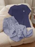 INAWLY بدلة كاجوال من قميص تي شيرت أكمام قصيرة برقبة مستديرة بطباعة فارس، وبنطال بخصر رباط متقلب